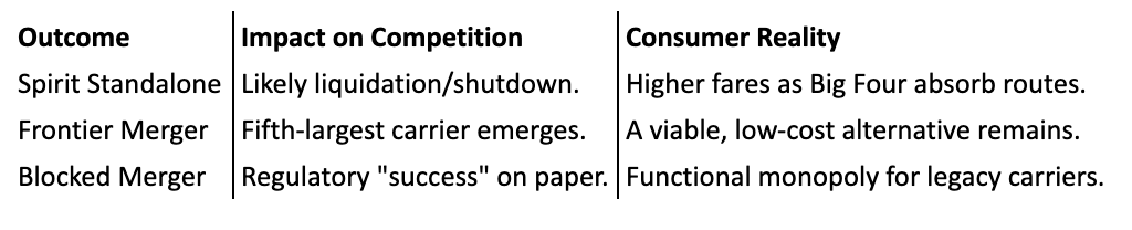 But the reality of 2025 has proved more cruel than the regulators’ models. Spirit’s independent path led not to robust competition, but to a “doom loop” of mounting debt and operational paralysis. As it turns out, a “maverick” cannot compete if it cannot afford its fuel. The failure of the JetBlue deal didn’t save Spirit; it merely stripped it of its last best hope for a gilded exit.